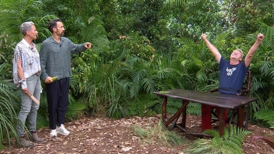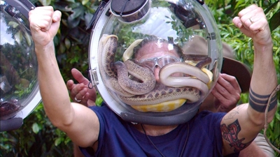 Finalprüfung für Gil – und die hat es buchstäblich in sich. Vier Stationen, vier „Hell Holes“, vier Mal tief reinlangen, während der Dschungel beschließt, es ihm so unangenehm wie möglich zu machen. Pro Runde hat Gil genau 60 Sekunden Zeit, um in Kästen vor sich einen Stern abzuschrauben. Klingt machbar, wäre da nicht der Plexiglas-Helm um seinen Kopf, der sich parallel mit allem füllt, was krabbelt, zappelt und definitiv nicht zur Wohlfühlzone gehört. Zum Warmwerden gibt es Mehlwürmer, die sich bis unter Gils Nase stapeln. Er bleibt erstaunlich ruhig, schraubt, greift und verstaut den ersten Stern. In Runde zwei wird im nächsten Helm auf Kakerlaken hochgefahren. Mehr Beine, mehr Gewusel, gleicher Ablauf: Gil lässt sich nicht aus der Ruhe bringen und dreht den nächsten Stern ab, als würde er zu Hause eine Schraube am Küchenschrank lösen. Dann wird es richtig ungemütlich: Skorpione und Riesenkakerlaken ziehen in Station drei in seinen Helm ein. Während andere längst über Flucht nachdenken würden, entwickelt Gil so etwas wie Routine im Chaos. Reingreifen in das „Hell Hole“ mit Ratten, Stern abdrehen, einpacken – fertig. Stern Nummer 3 für Gil. Sonja bringt es treffend auf den Punkt: „Er hat den Dreh raus!“ Die vierte und letzte Station setzt noch einen drauf. Im Kasten warten diesmal gleich zwei Sterne, umringt von hunderten Ameisen. Im Helm werden währenddessen Schlangen eingelassen, dicht vor Gils Gesicht. Unbeeindruckt schraubt er den ersten Stern ab, dann den zweiten, noch bevor alle Schlangen ihren Platz gefunden haben. Anschließend heißt es: ausharren. 60 Sekunden mit den Reptilien, keine Bewegung, kein Ausweichen. Als die Zeit abläuft, ist klar: Gil hat geliefert. Fünf von fünf möglichen Sternen wandern in den Beutel und damit Vorspeisen fürs Camp, ein persönlicher Drink und ein exklusives Goodie für ihn selbst.